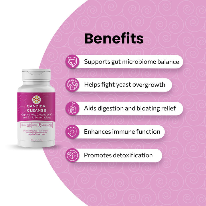 A powerful herbal and probiotic blend designed to support gut balance by reducing candida overgrowth. It promotes digestive health, restores microbiome balance, and strengthens immunity.