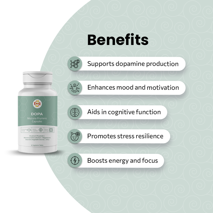 A natural dopamine precursor that enhances mood, motivation, and cognitive function. It supports neurotransmitter balance, promotes mental clarity, and aids in stress resilience.