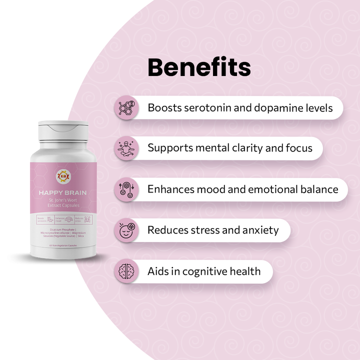 A mood-boosting nootropic supplement formulated to enhance neurotransmitter function, improve mental clarity, and support emotional well-being. It promotes relaxation and cognitive balance.