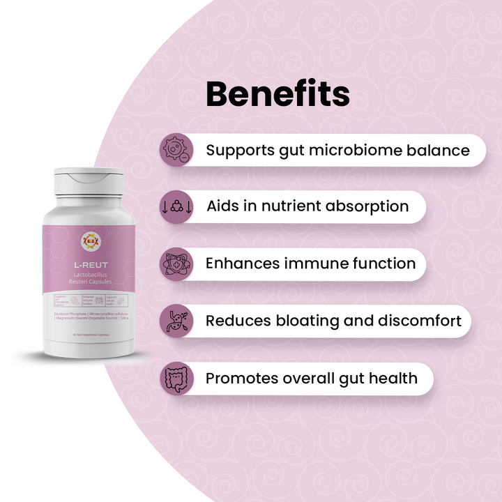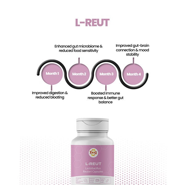 A specialized probiotic supplement containing Lactobacillus reuteri, known for its benefits in gut health, immune support, and hormone regulation. It helps restore microbiome balance and digestion.