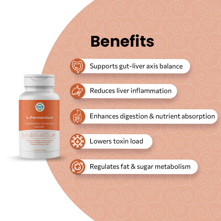 A probiotic formulation specifically designed to support gut-liver health. By promoting a balanced gut microbiome, it aids digestion, reduces inflammation, and helps improve liver function in individuals with fatty liver concerns.
