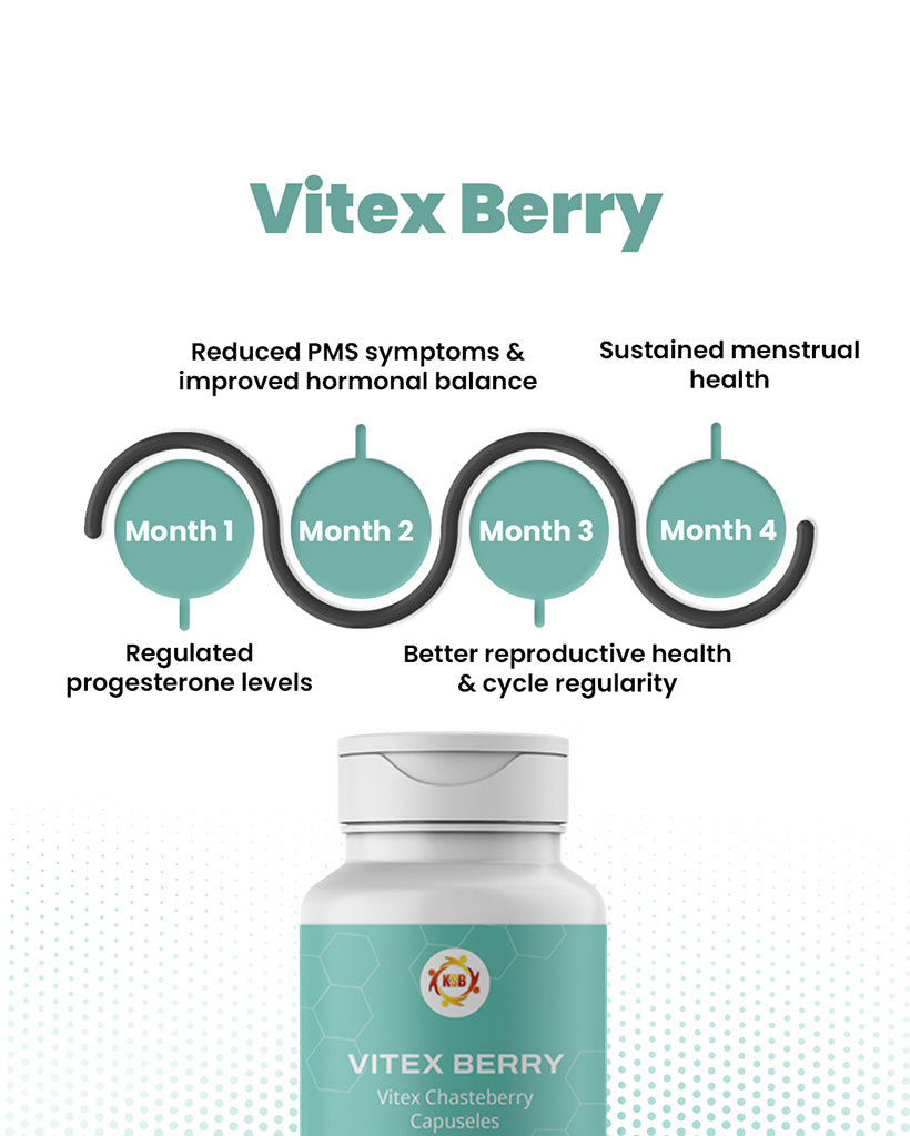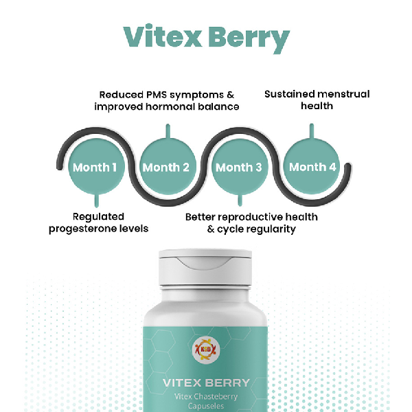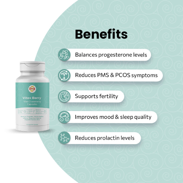 A natural herbal supplement derived from Chasteberry, traditionally used to support menstrual cycle regularity and hormonal balance. It helps reduce PMS symptoms, regulate ovulation, and improve overall reproductive health.